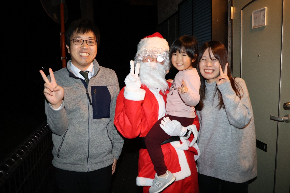 九重町役場の若手職員、サンタ姿で子育て世帯訪問