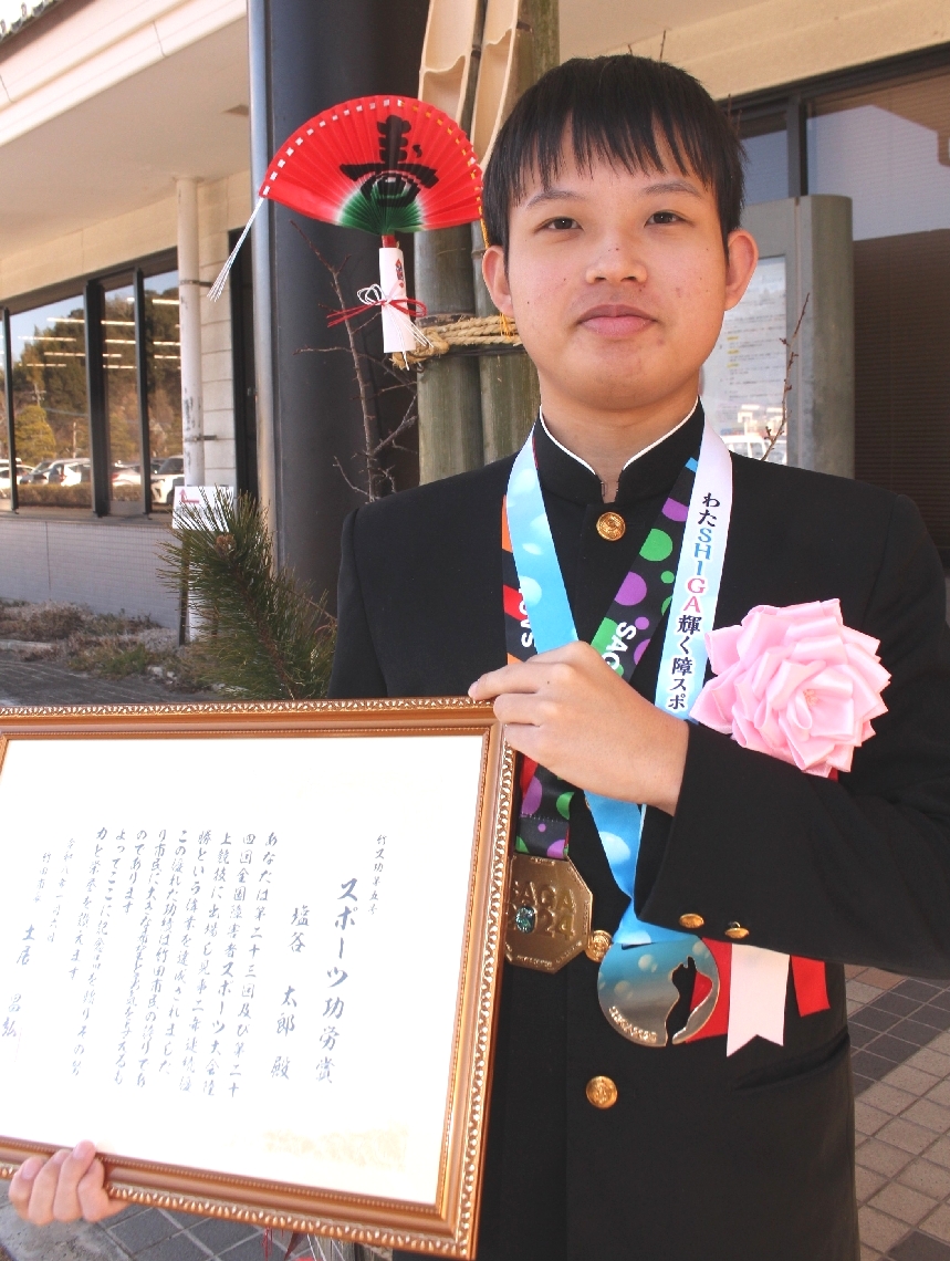竹田市の塩谷さんに市がスポーツ功労賞全国障害者大会陸上競...