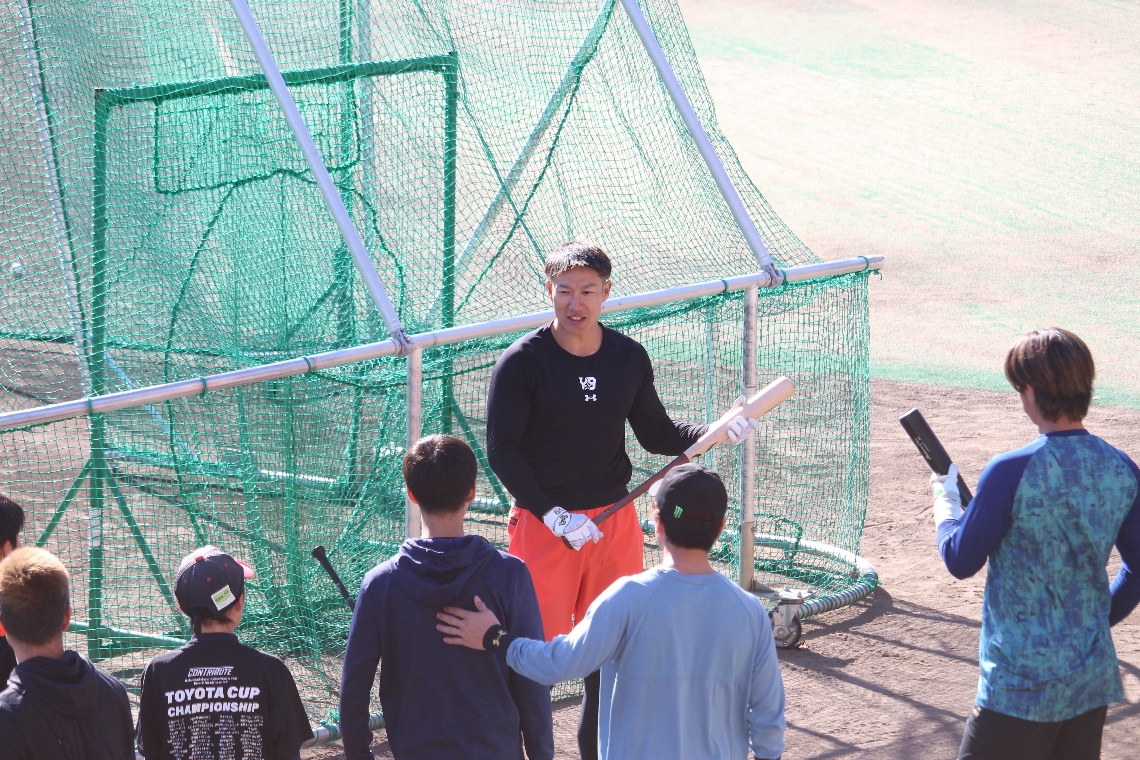 ソフトバンクの柳田選手らが佐伯市で自主トレキャッチボール...