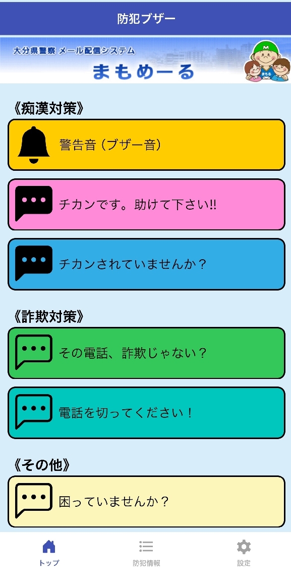 防犯ブザーや痴漢対策…大分県警「まもめーる」アプリに新機...
