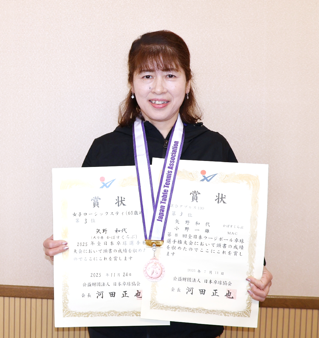 全日本卓球マスターズの部、由布市の矢野さん3位初のベスト...