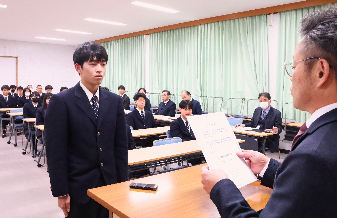 国東高環境土木科の卒業生に応援宣言県建設業協会国東支部「...