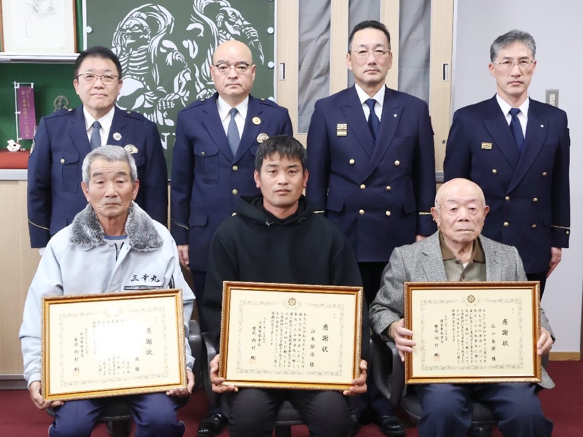 海に落ちた高齢者を救助、国東署が男性3人に感謝状