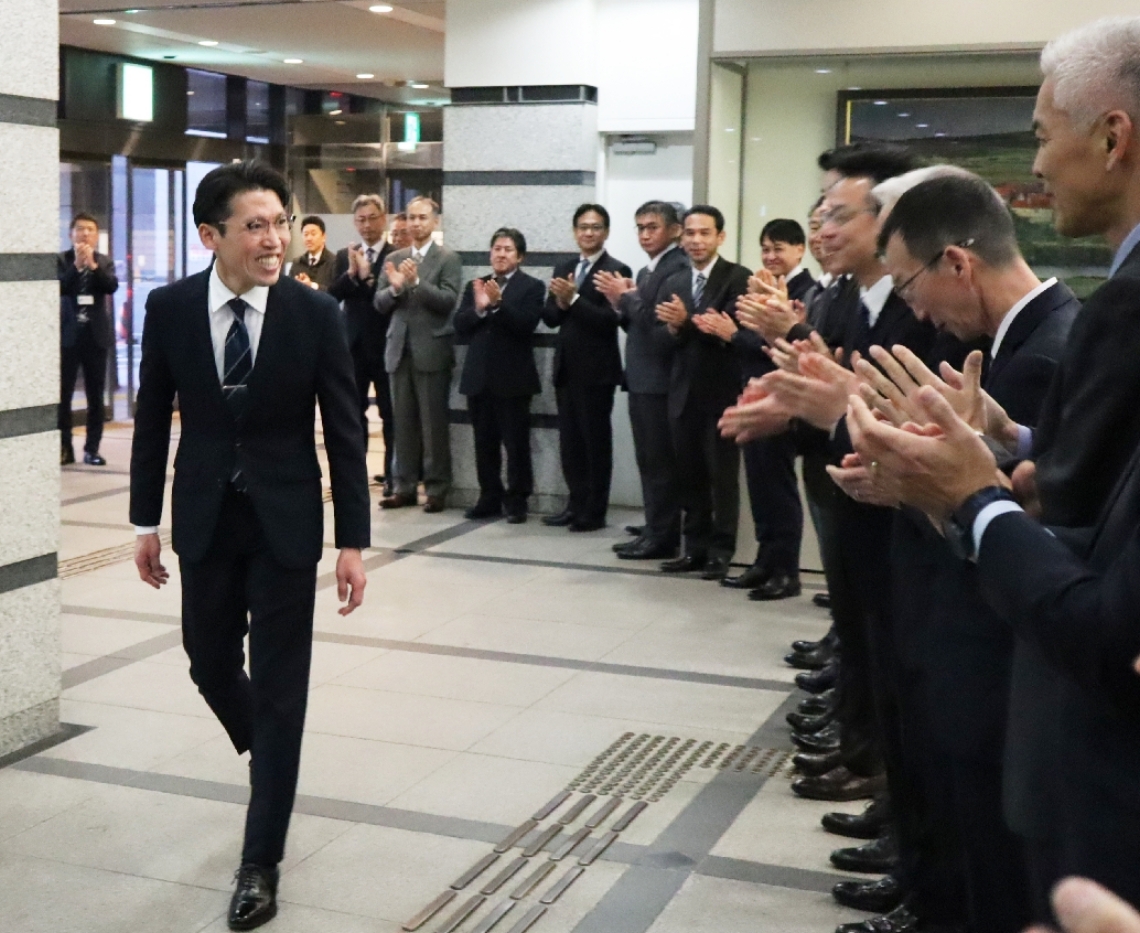 大分県庁で幡野県警本部長の離任式「これからも県民の期待と...