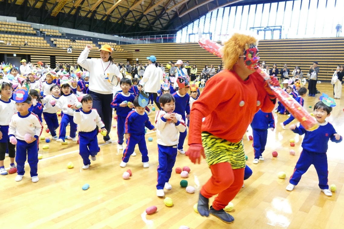 「鬼は外!」園児が全力投球大分市で節分スポーツ大会