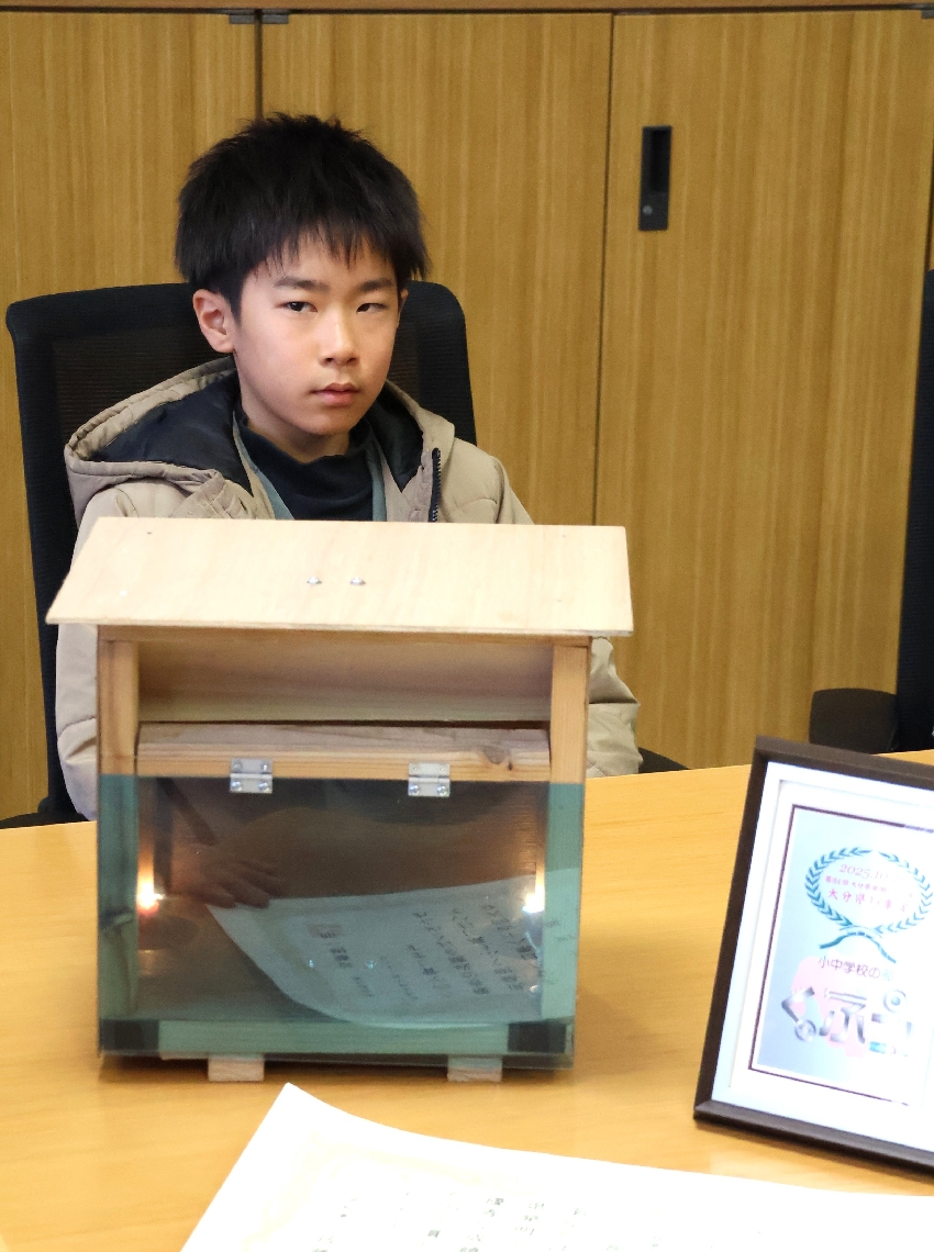 北杵築小5年の長野さん、県発明くふう展最高賞を市長に報告...