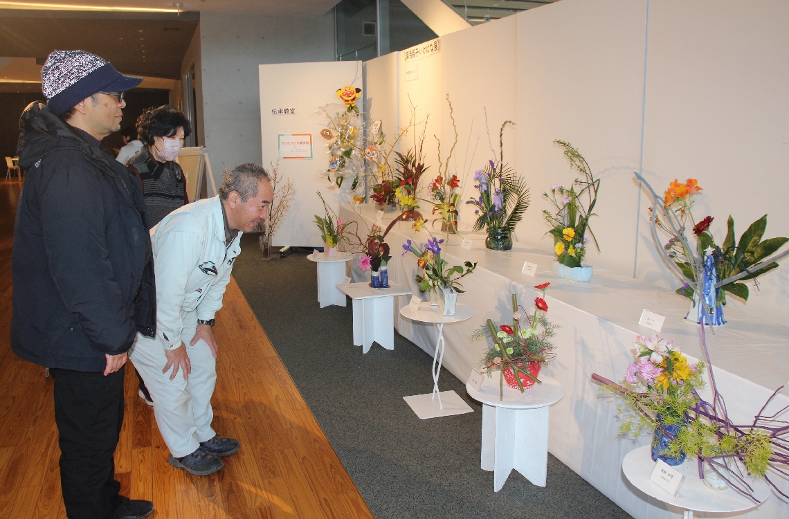 佐伯市で親子生け花展感性のおもむくまま、春を待つ気持ち表...