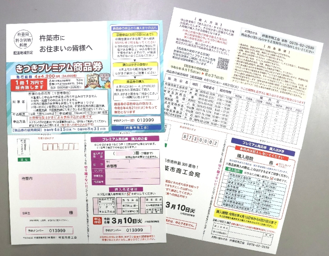 杵築市プレミアム付き商品券、3月10日まで購入希望を受け付...