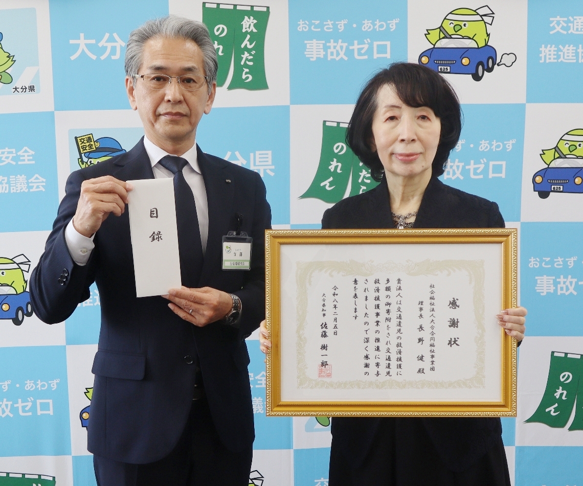 大分合同福祉事業団が県交通事故遺児等援護基金に100万円寄...