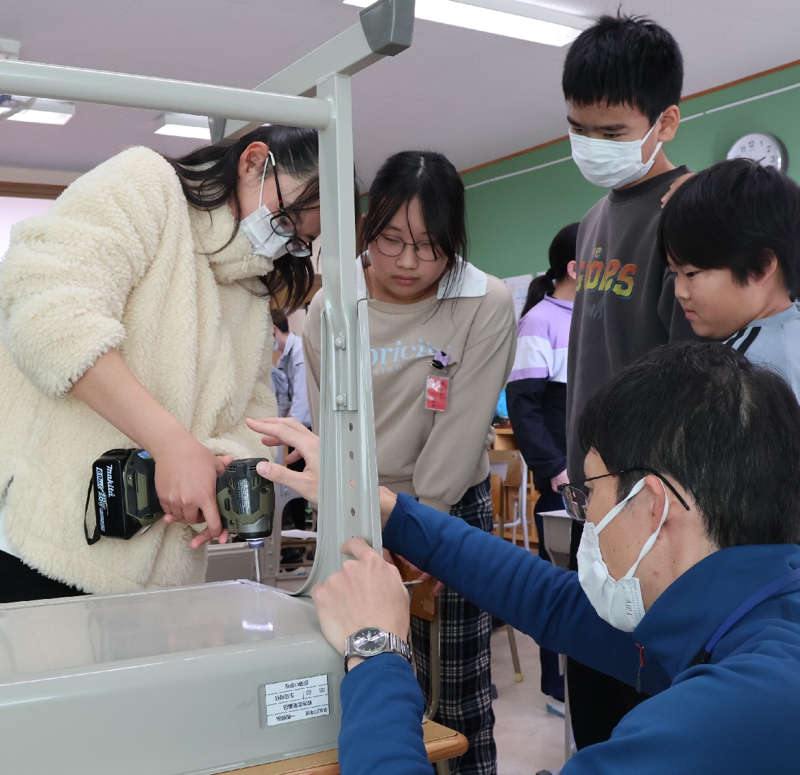 佐伯市八幡小の6年生、中学で使う机に県産スギの天板を取り...