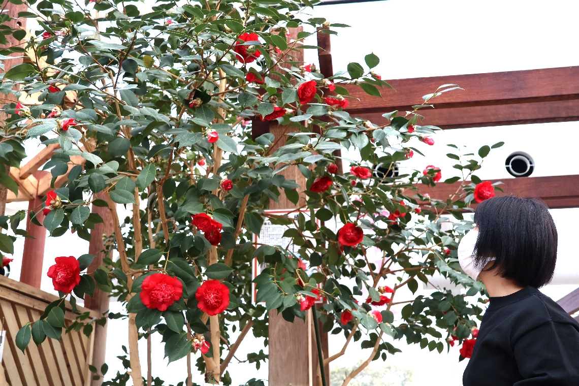 るるパークでツバキが見頃、14日からイベント赤やピンクに黄...