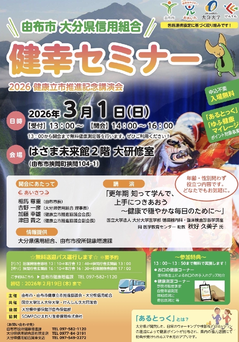 由布市挾間町で3月1日に「健幸セミナー」湯布院、庄内エリ...