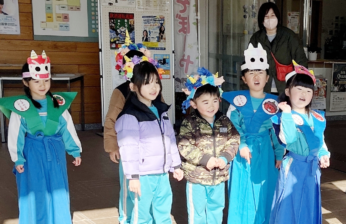 玖珠町のくすのきこども園園児「鬼は外、福は内」近隣の民家...