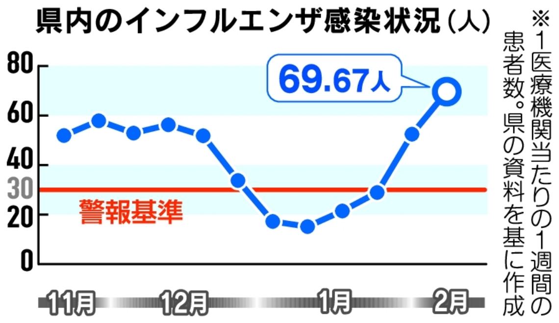 大分県内のインフルエンザ患者4週連続で増加、今季最多に