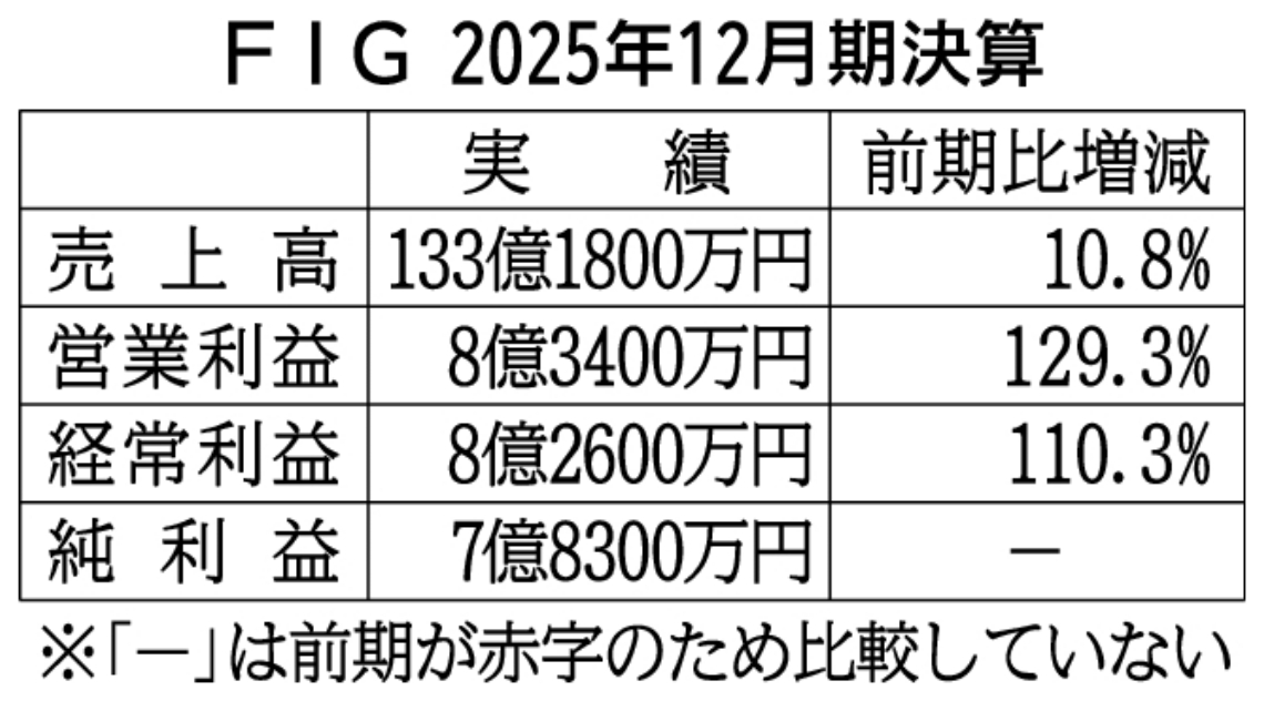 FIGの25年12月期通期決算は増収増益