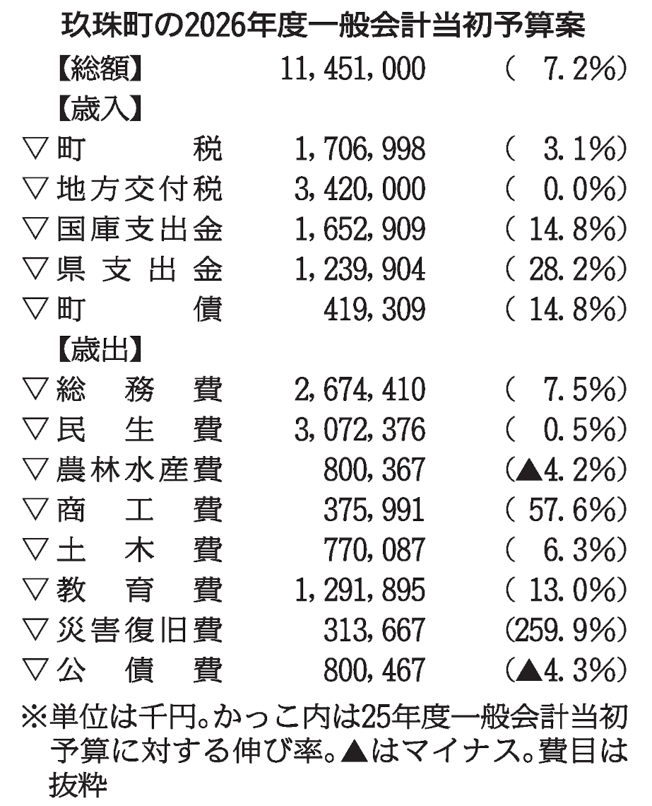 玖珠町の26年度当初予算案、7.2%増の114億5100万円豪雨災害...