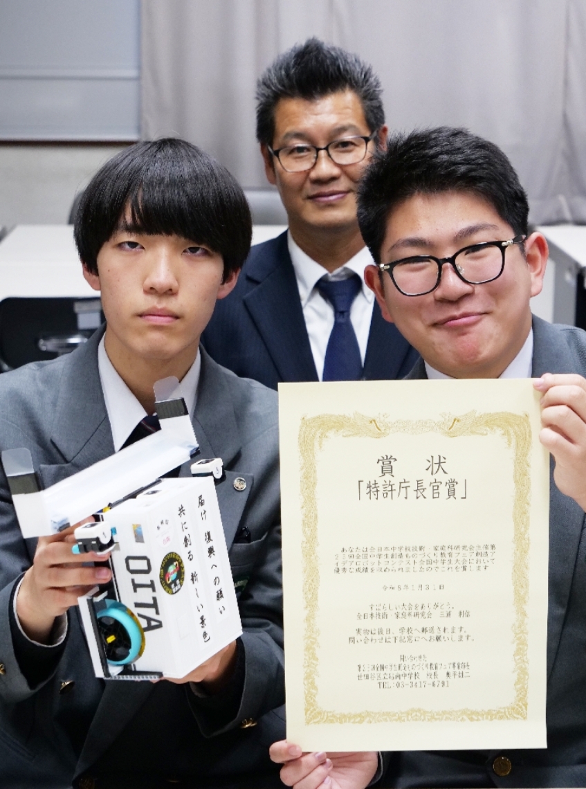 大分市原川中の椎原さんと八坂さんが特許庁長官賞ロボコン全...