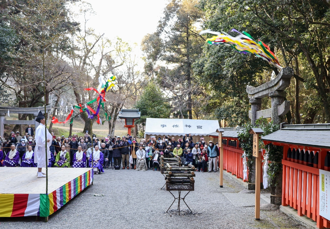 宇佐神宮境内で鎮疫祭「五色幣」投げて縁起試し