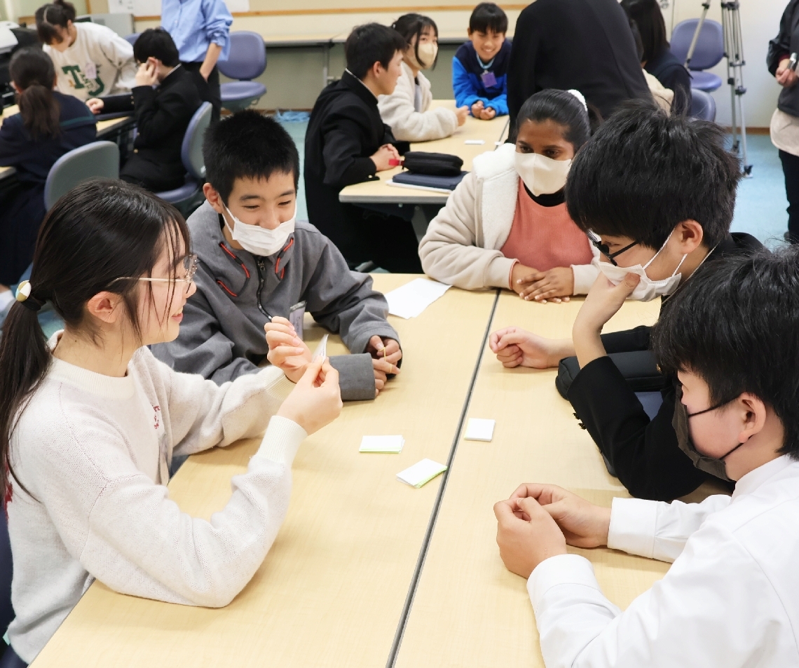 佐伯市本匠小児童がALTとの交流活動で中学の授業体験俳句や...