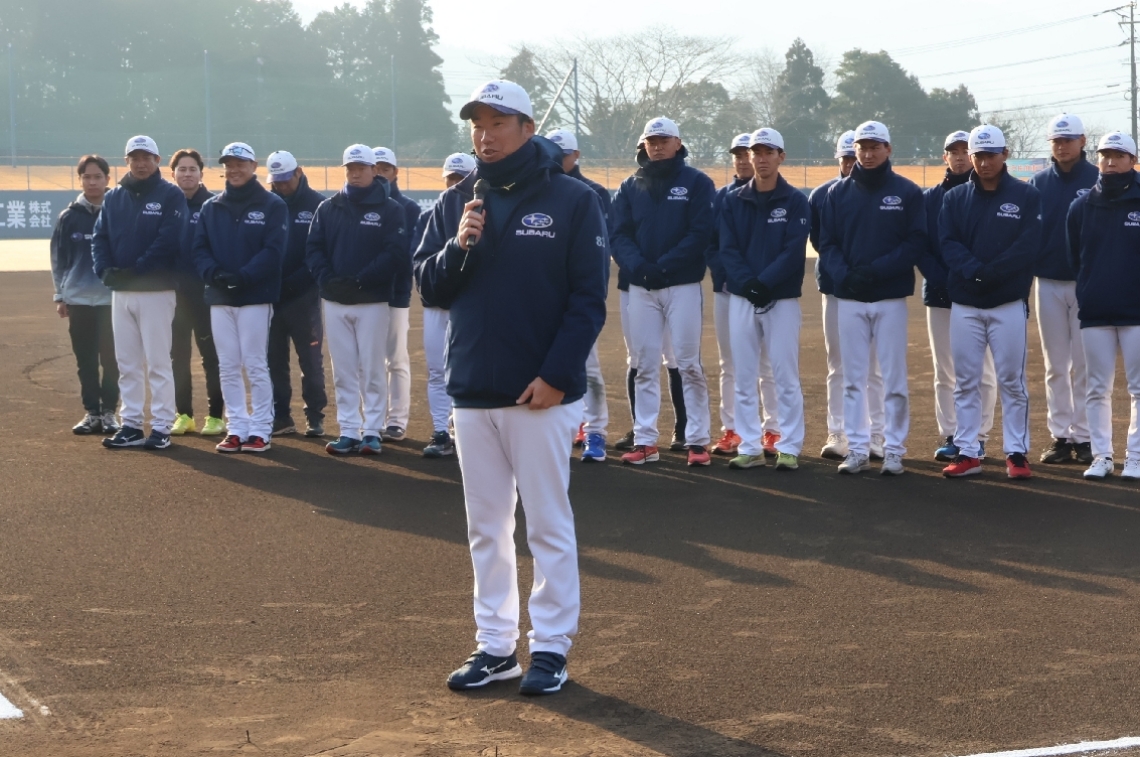 佐伯市で合宿中のSUBARU硬式野球部の歓迎式監督「さらなる飛...