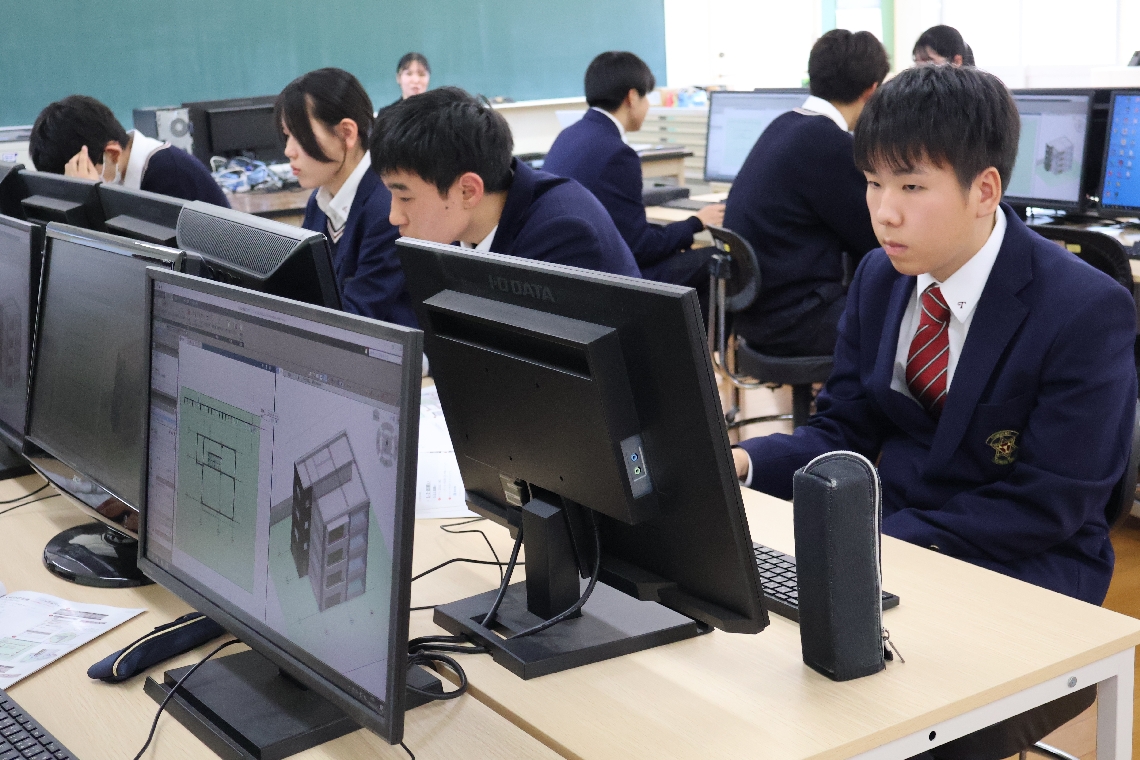 鶴崎工高で建設現場の先端手法BIMを学ぶ講座図面を描き、重...