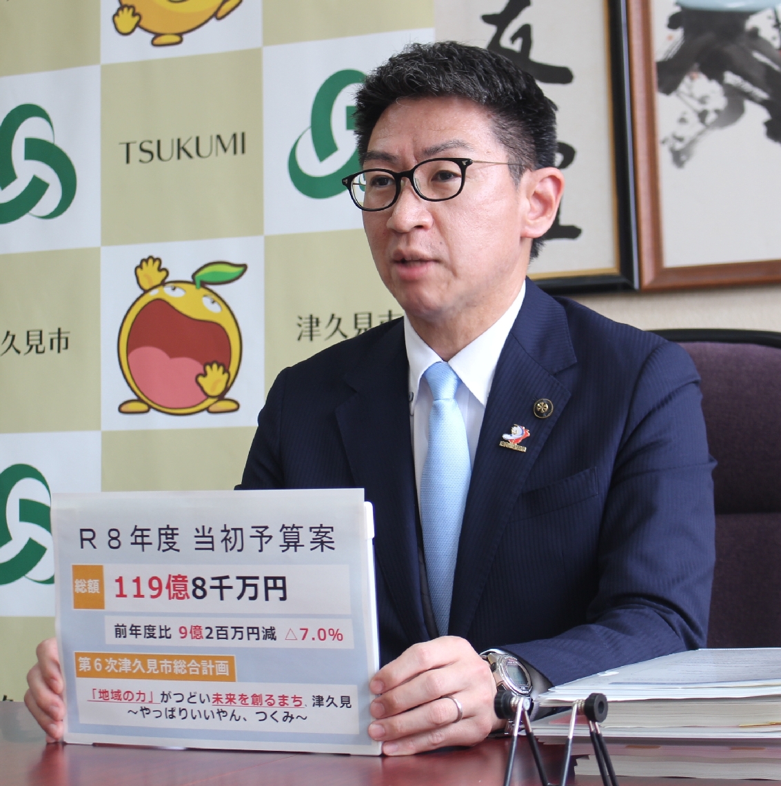 津久見市の26年度当初予算案、7%減の119億8千万円