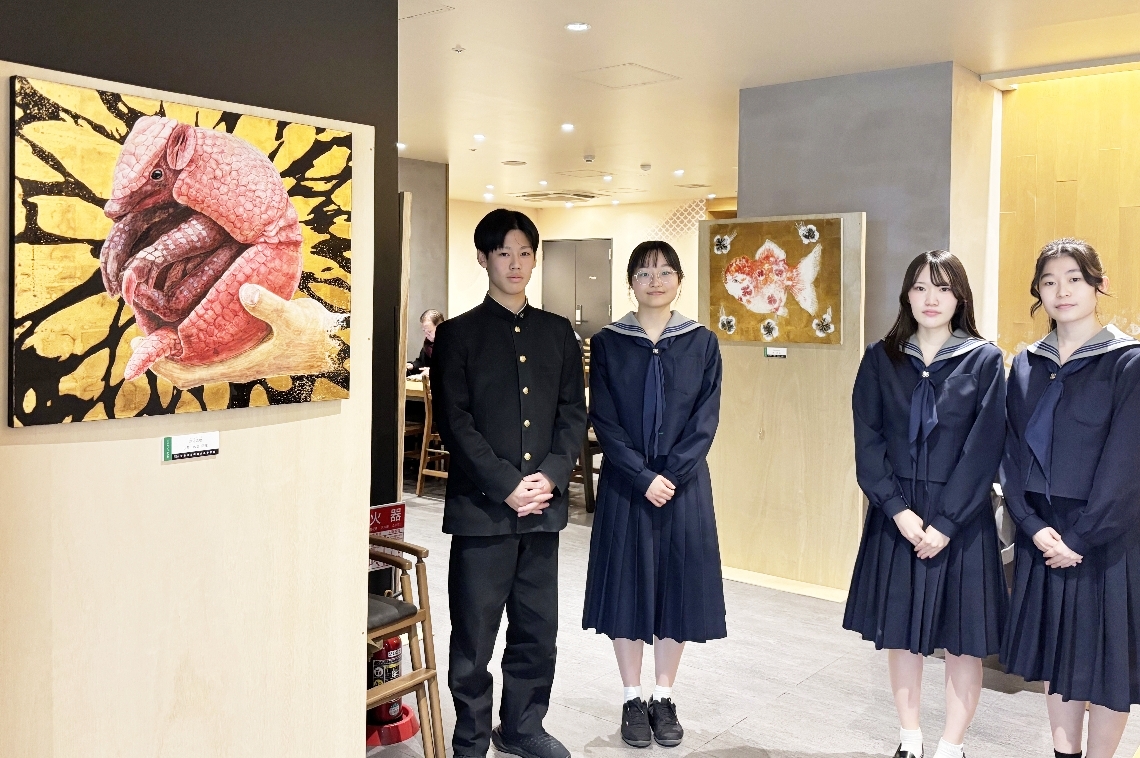 芸術緑丘高生徒がスタバトキハ本店で日本画展3年の集大成「...