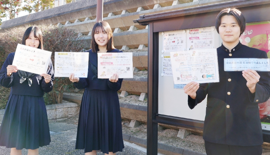 日田高卒業の4人が「救急ポスター」作製小児科医監修、市内...