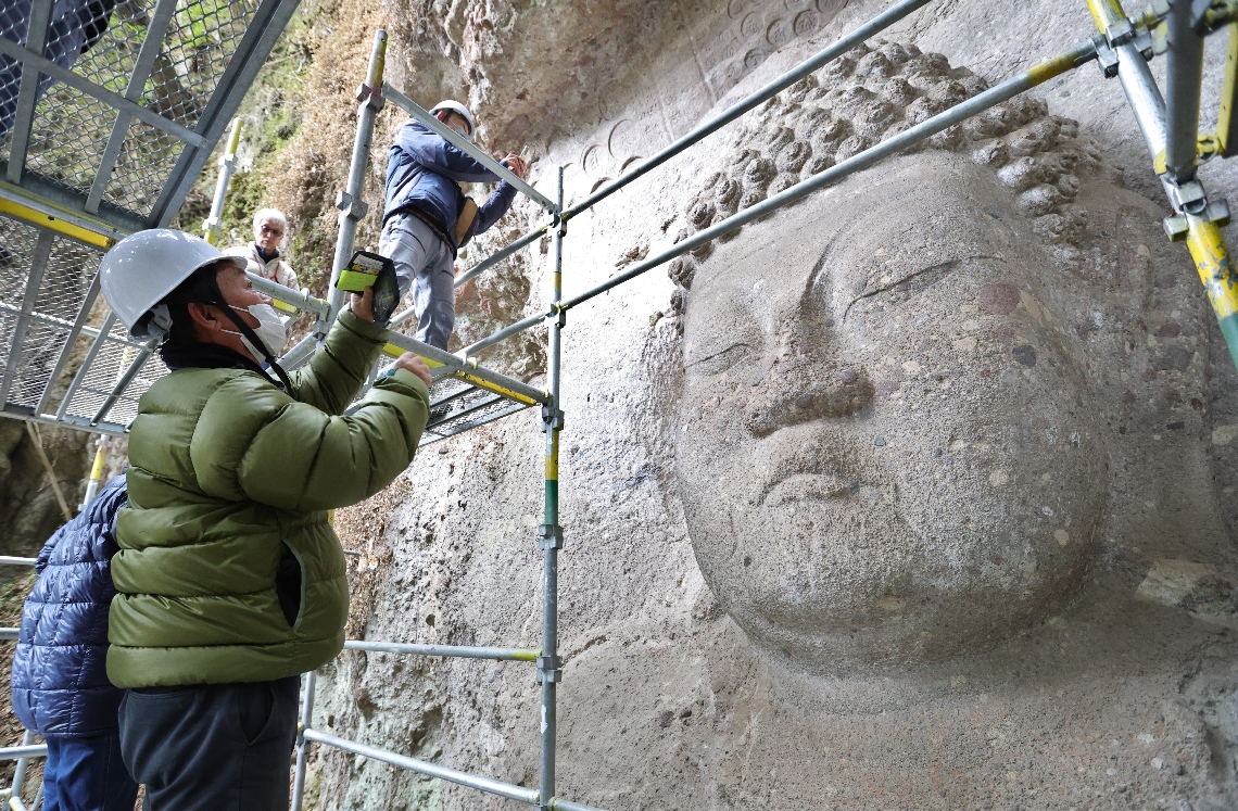 【カメラ散歩】豊後高田市の熊野磨崖仏岩肌の質感、間近で体...