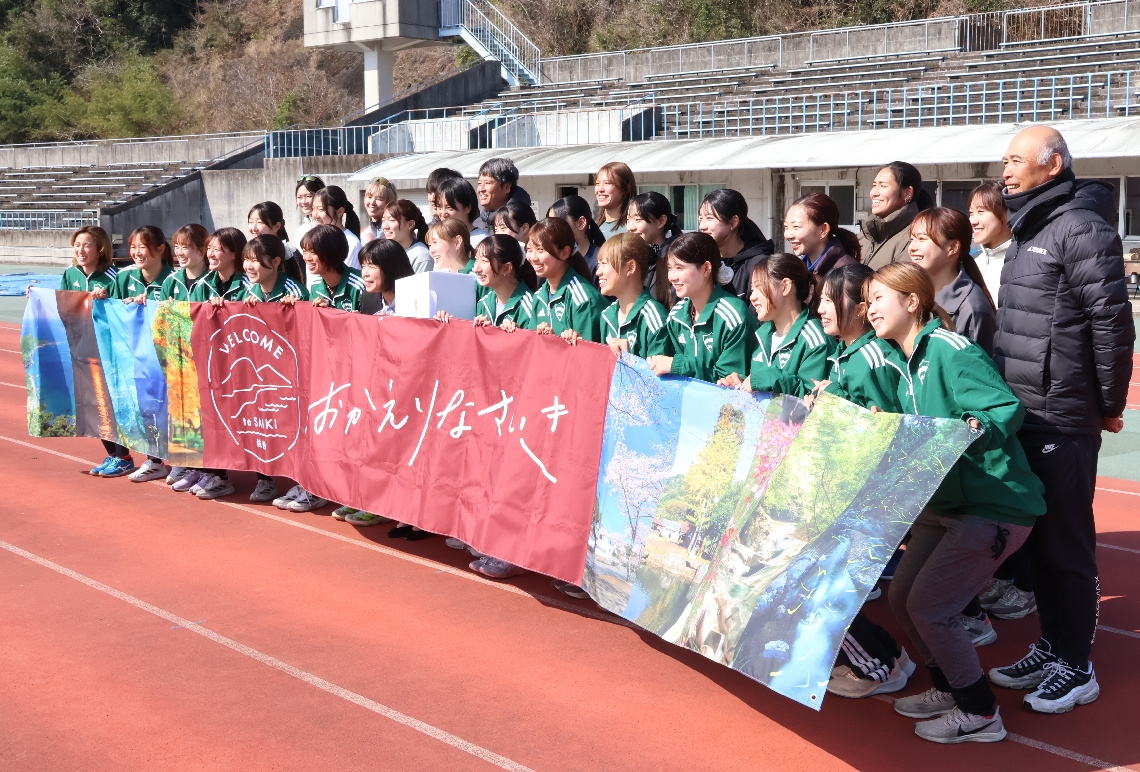 青山学院大陸上部女子短距離ブロックが佐伯市で合宿式典で市...