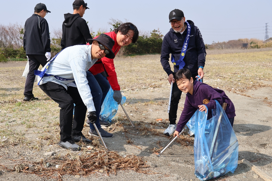 大分中央ロータリークラブなどが清掃活動と松の植樹