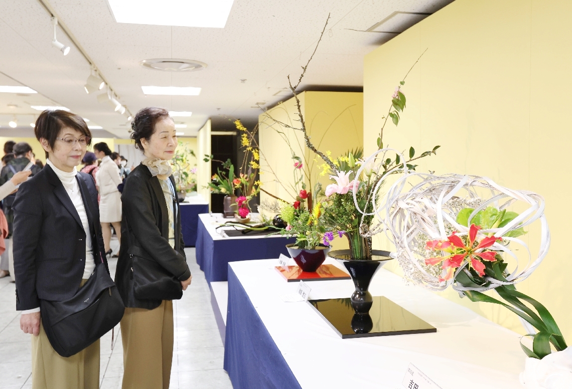 大分合同諸流いけばな展始まるトキハ本店で7日まで11流派の...