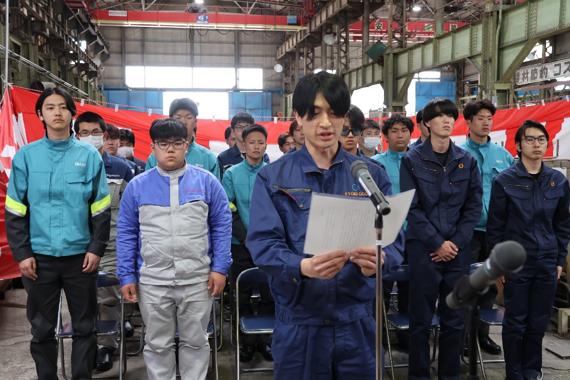 佐伯市で大分地域造船技術センターの入所式県内外8社の26人...