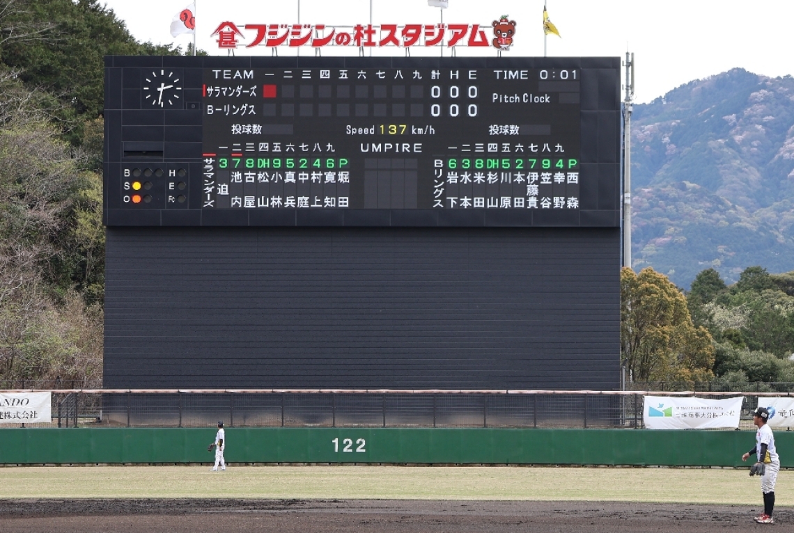臼杵市フジジンの杜スタジアム、スコアボードが一新高輝度LE...