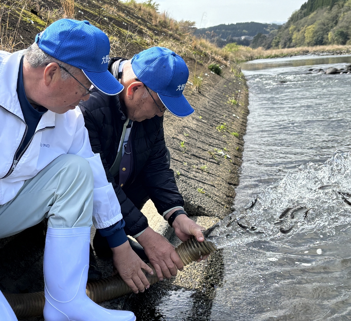 豊後大野市の大野川漁協がアユの稚魚3万匹放流河川公園など...