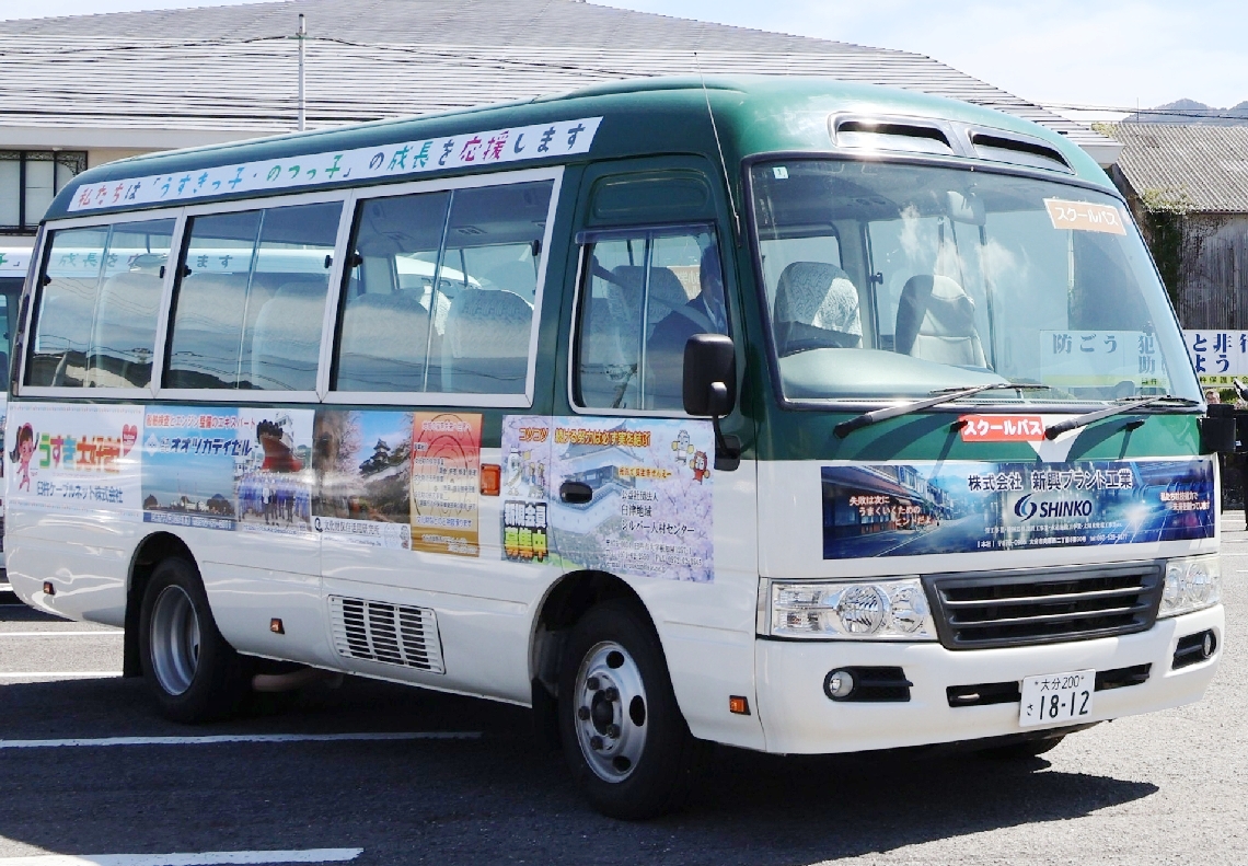 臼杵市教委が企業広告掲載のスクールバス運行を開始協賛金で...