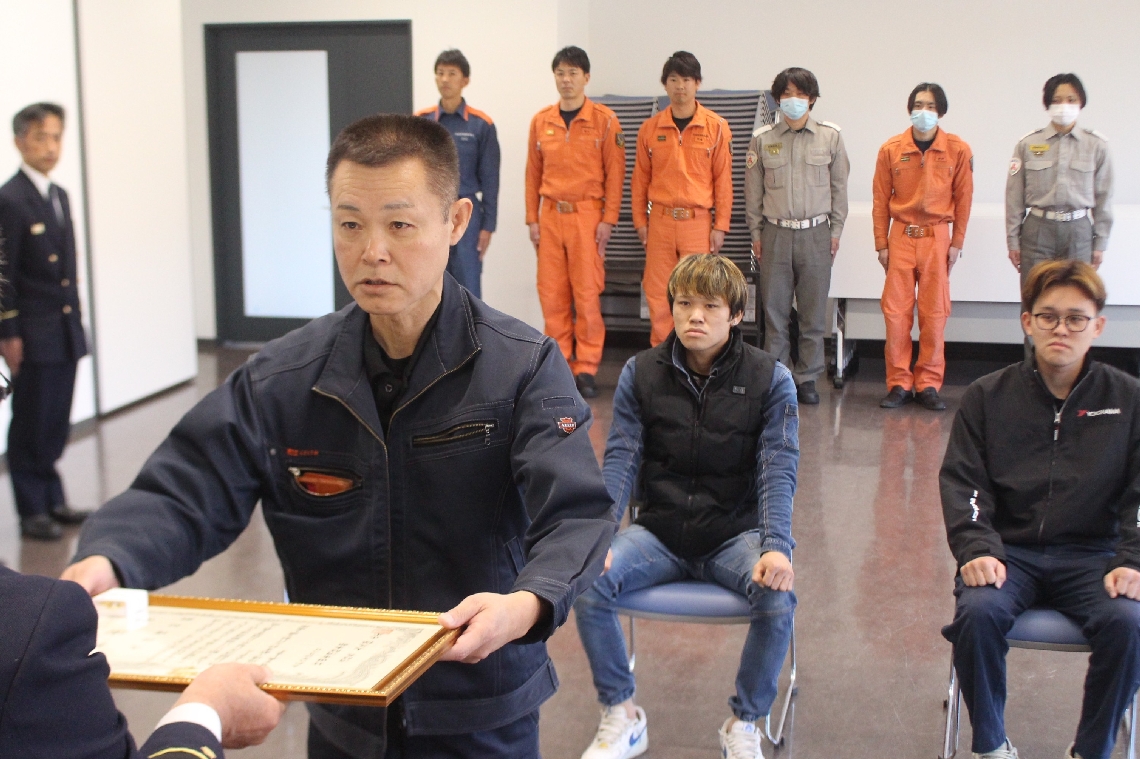 竹田市消防本部が鹿児島県の親子3人に感謝状車で通りがかり...
