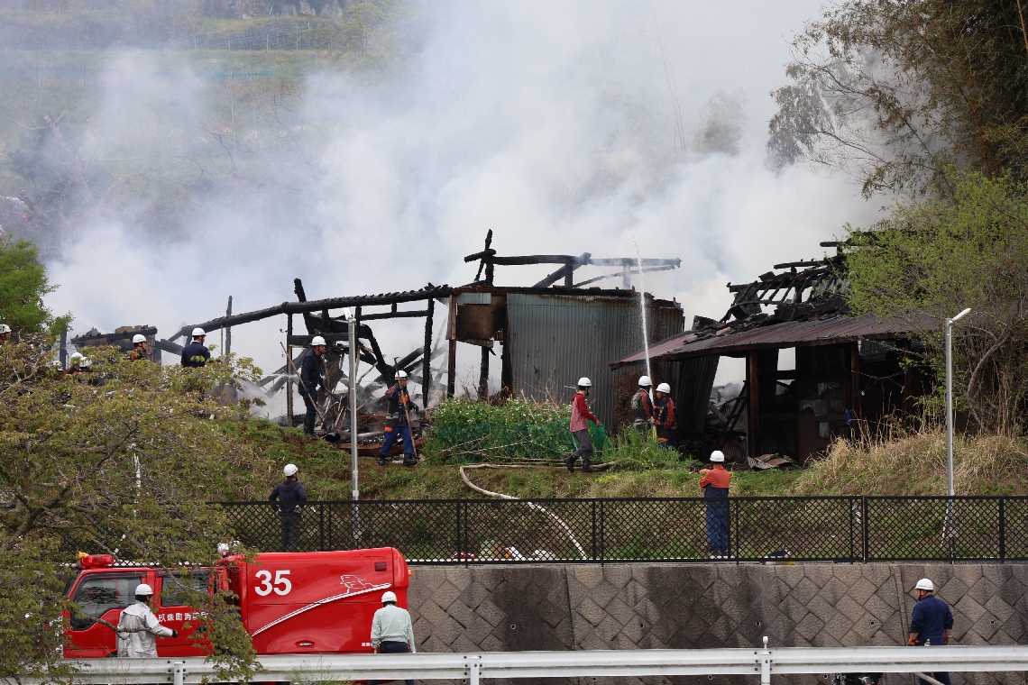 大分市下原で倉庫全焼、空き家の一部に延焼けが人なし、草燃...