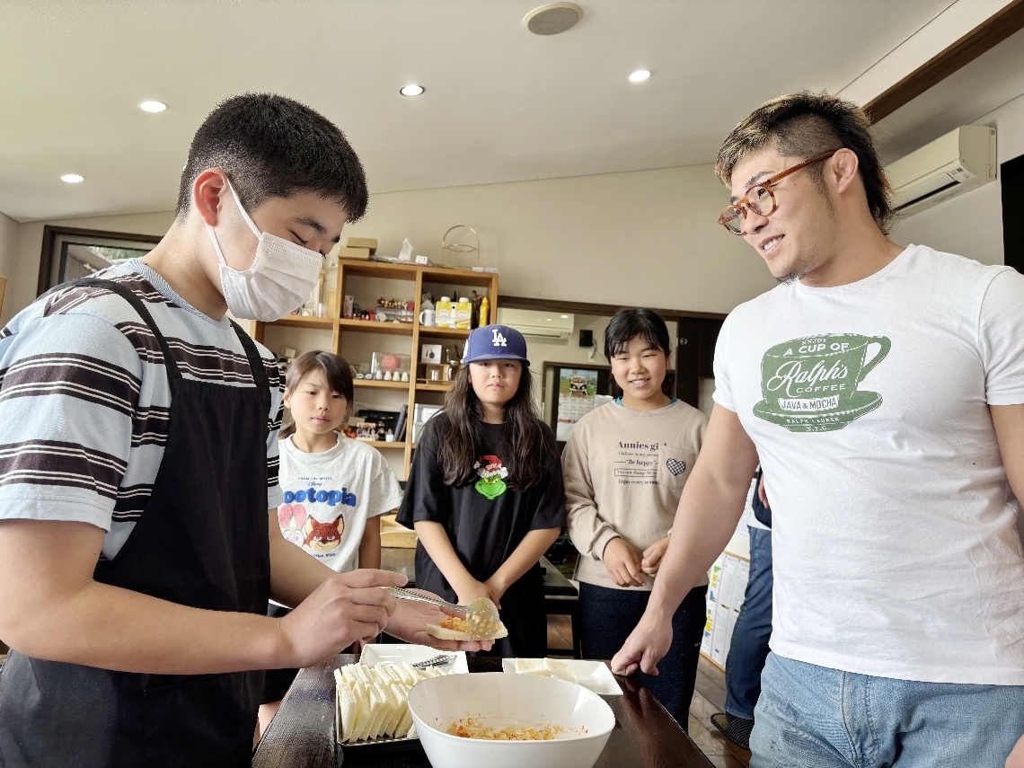 大分市河原内地区で親子が土あそび陶芸で土を練り、タケノコ...