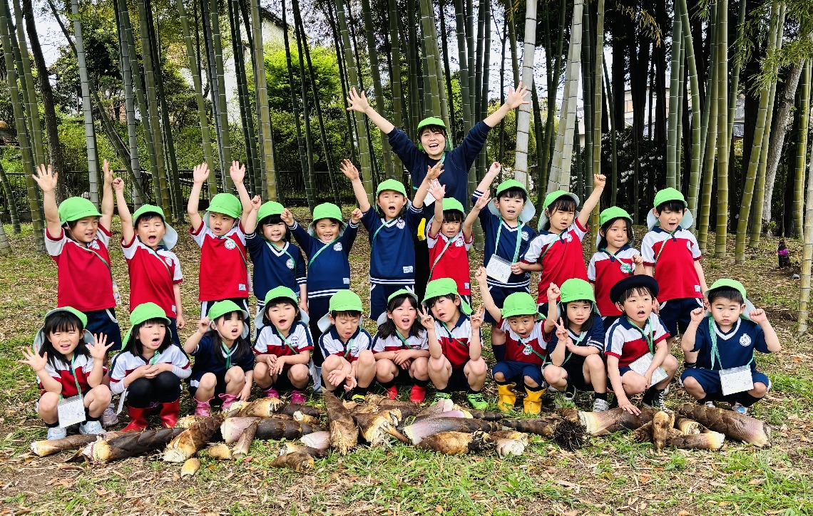 大分市のだ山幼稚園の園児がタケノコ収穫体験年長組69人参加...