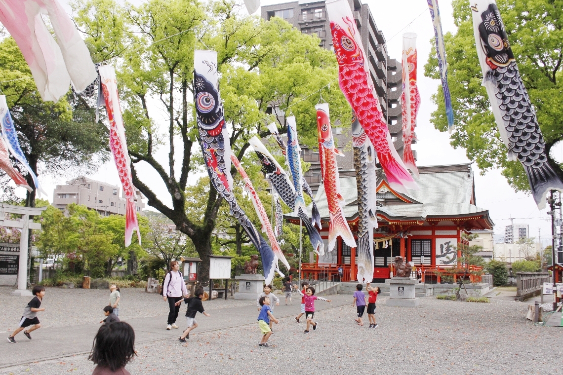 大分市の若宮八幡社境内にこいのぼり色とりどりの45匹、子ど...
