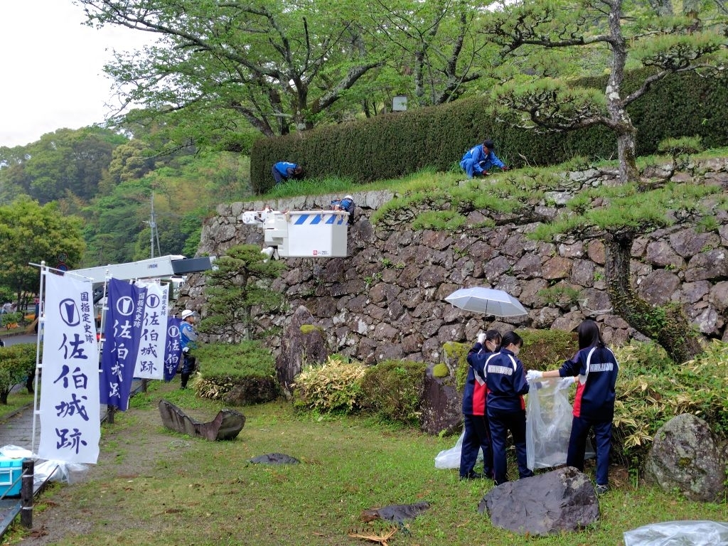 佐伯城跡でボランティア205人が石垣清掃活動高校生や市民参...