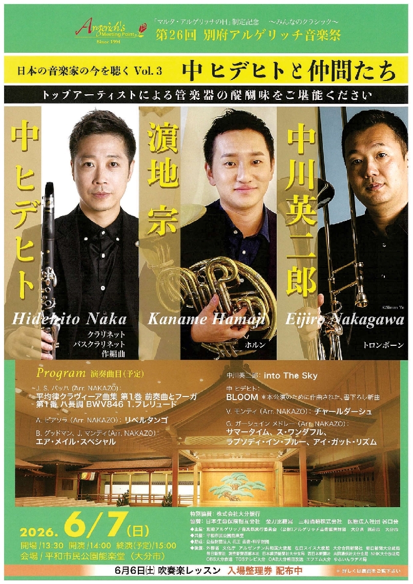 6月7日に別府アルゲリッチ音楽祭「日本の音楽家の今を聴く...