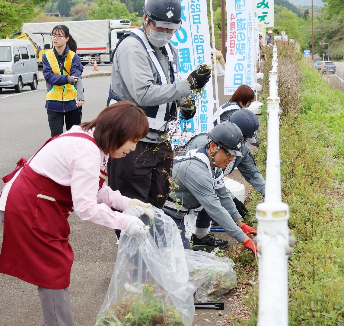 豊後大野市の「道の駅みえ」で美化活動140人がごみ拾いや草...
