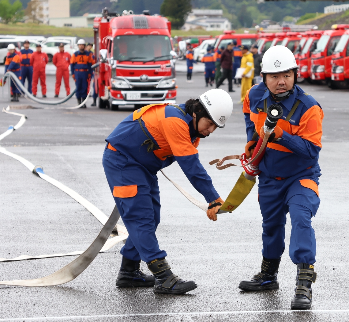 玖珠町消防団が操法訓練県大会への出場目指し、25チームがき...