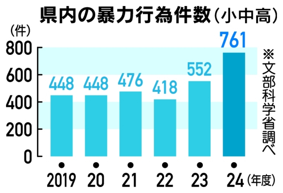 子ども同士の人間関係が荒れている。文部科学省が公表した2024年度の「問題行動・不登校調査」によると、大分県内の小中高校で発生した暴力行為は761件に上り、前年度から209件増え、1999年度以降で最多を記録。暴力行為の急増は看過できない...