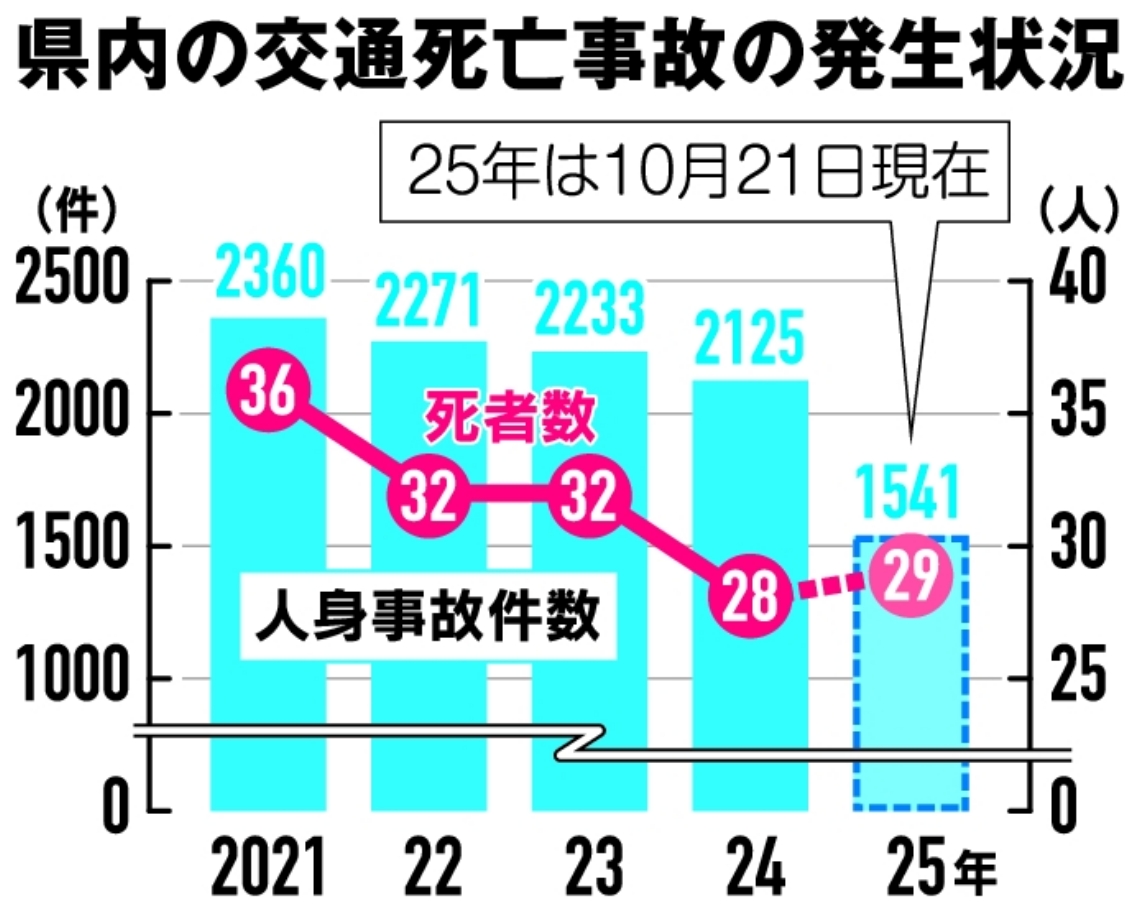 一瞬の判断の遅れから取り返しのつかない事態を招く交通事故。大分県内の今年の交通事故による死者が既に昨年1年間の死者数を超えた。過去5年間で最速のペースで推移しており、これ以上の犠牲者を出さないよう歯止めをかける必要がある。 県警交通企...