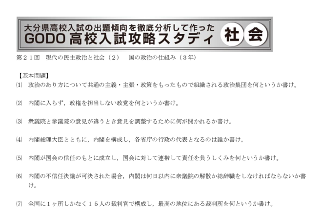 大分県高校入試の出題傾向を分析して全中学生対象に対策問題を作りました。 Gateでも同時更新します。得点力アップをめざして問題にチャレンジしてみよう!