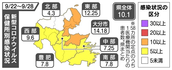 新型コロナウイルスが流行している。県内の新規患者数は8週連続で増加し、1医療機関当たりの患者数が1週間で10人以上の「注意報レベル」に達した。中でも佐伯市は30人以上の「警報レベル」まで拡大。医療関係者は「症状が出た時は自分で判断せず、早...
