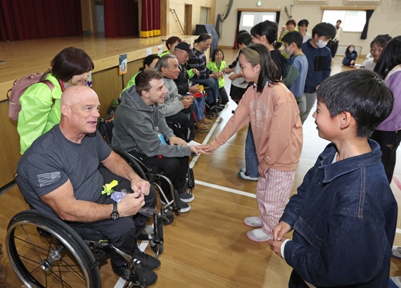 第44回大分国際車いすマラソン(16日・大分市)に出場する海外選手らが12日、大分市大道町の大道小を訪れ、5年生113人と交流した。...